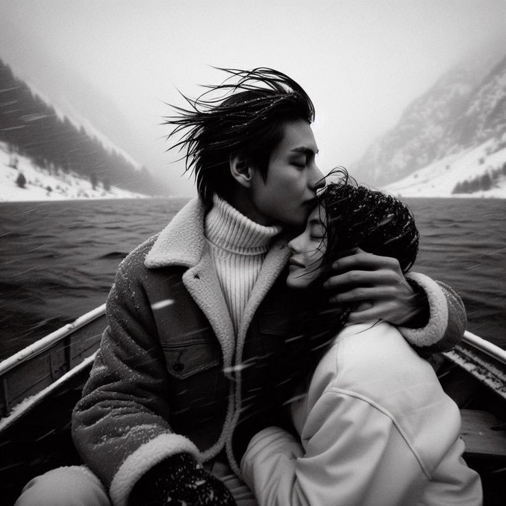 Durante o dia, eles alugaram um barco. O mar estava agitado, mas S/N não sentia medo. Com Taehyung ao seu lado, o oceano não era mais um abismo que tentou engoli-la, mas um horizonte vasto e livre. Ele a segurava contra o peito, protegendo-a do vento frio com seu próprio corpo, depositando beijos em sua testa enquanto a neve caía levemente sobre eles. Era o silêncio que eles tanto buscaram: a paz de quem não precisa mais lutar para provar nada.